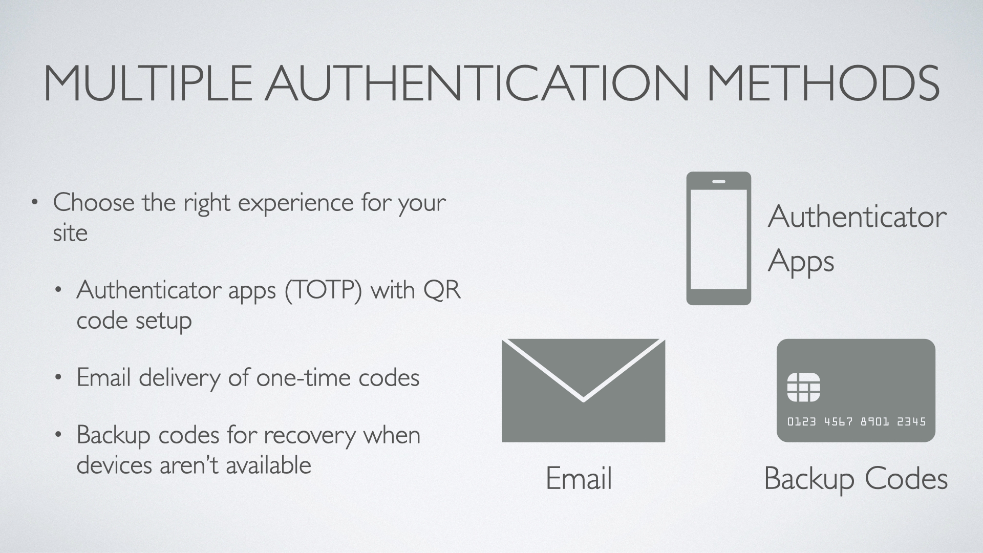 Support for standard authenticator apps and email delivery provides a straightforward baseline that works for most teams. Optional companion functionality can extend delivery/verification behaviours as your needs evolve.