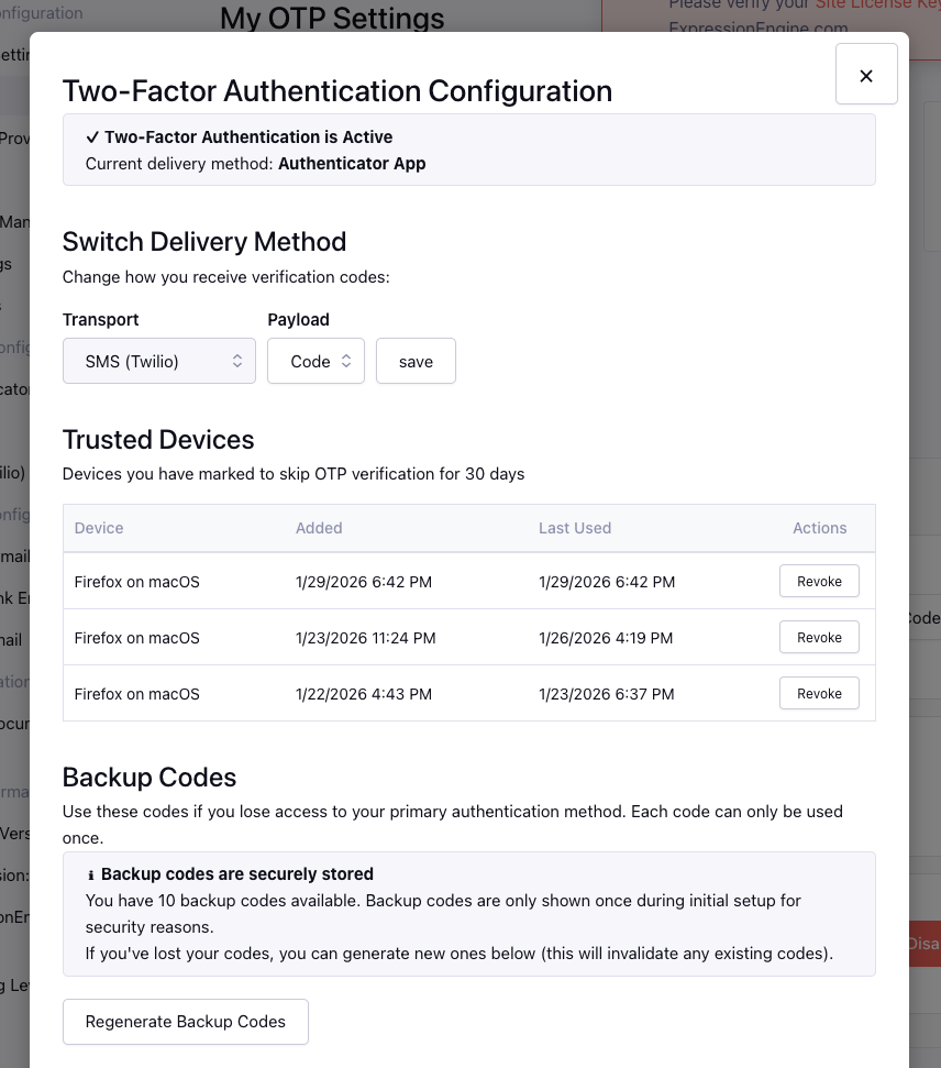 Deliver JCOGS OTP Pro verification payloads (typically one-time codes) to members by text message, using a nominated ExpressionEngine Member Field as the phone number source.