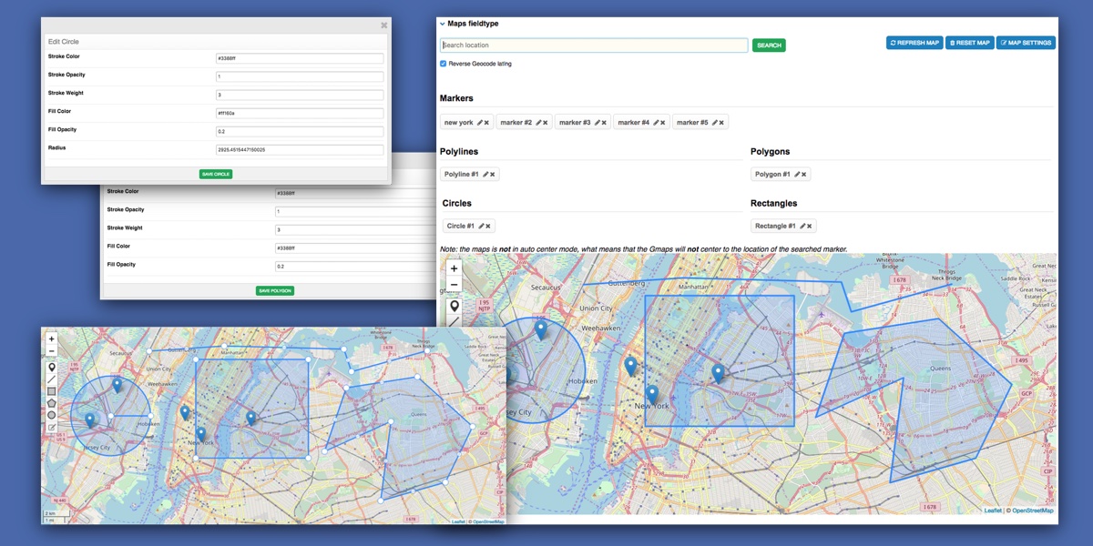 The official fieldtype for the Reinos Maps module. Simply modify your Map from within your entry and place it on your page with just one template tag, your custom field tag. It also provide some powerful tags for the front-end.