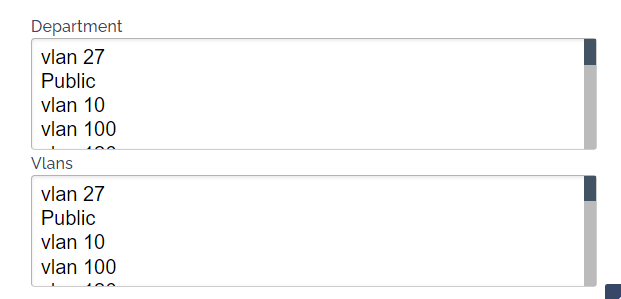 When the Page is loaded both the above select menus are populated with the Last Category Group to load options, in this case, VLANS group6